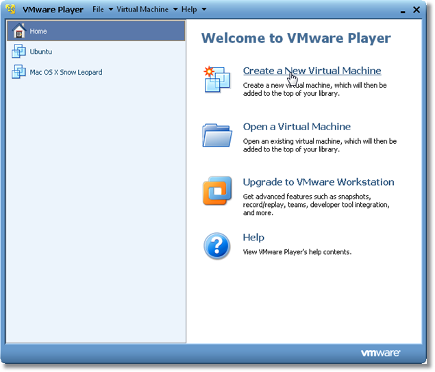 Open VMware, select “Create a new Virtual machine”